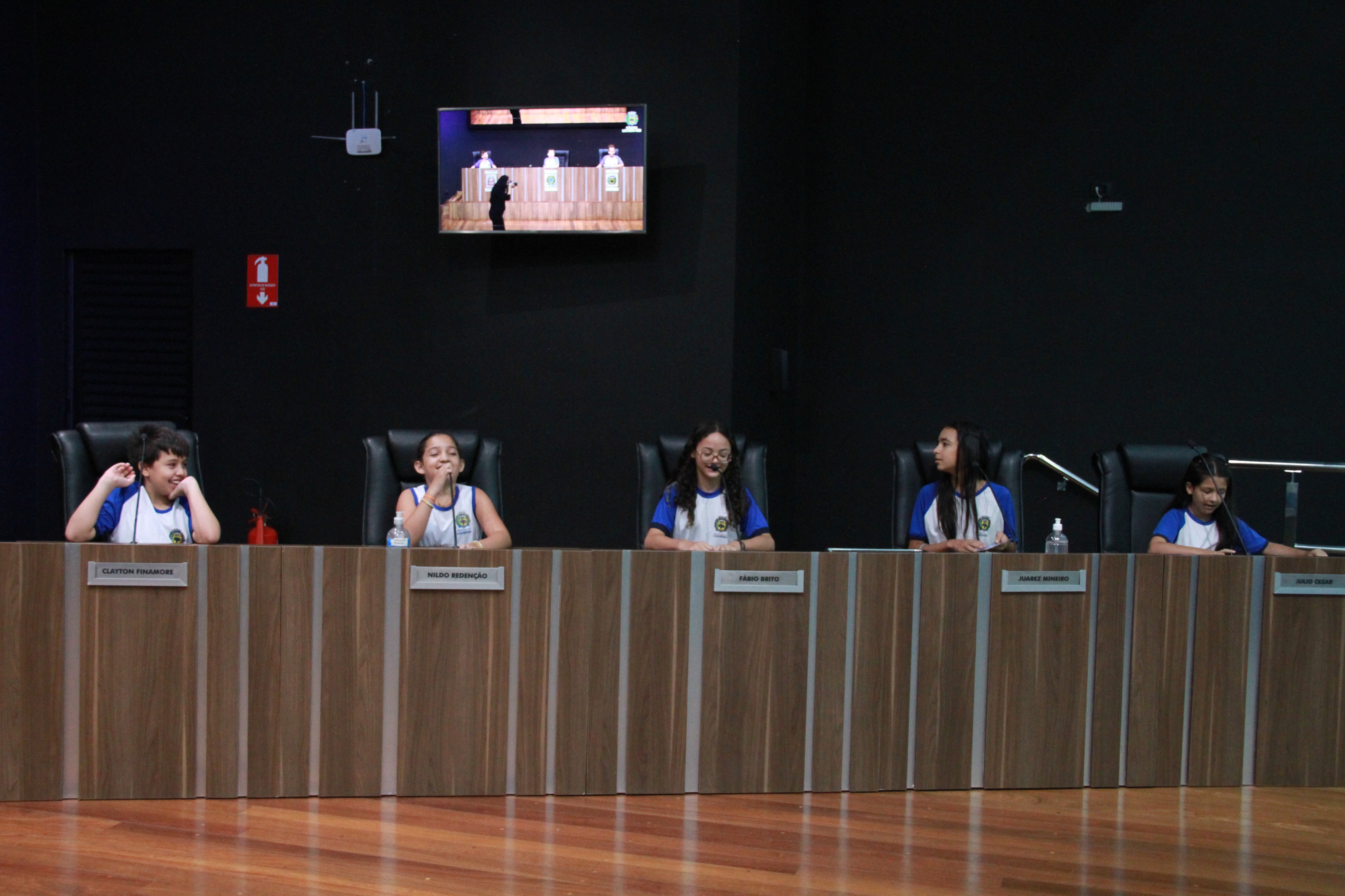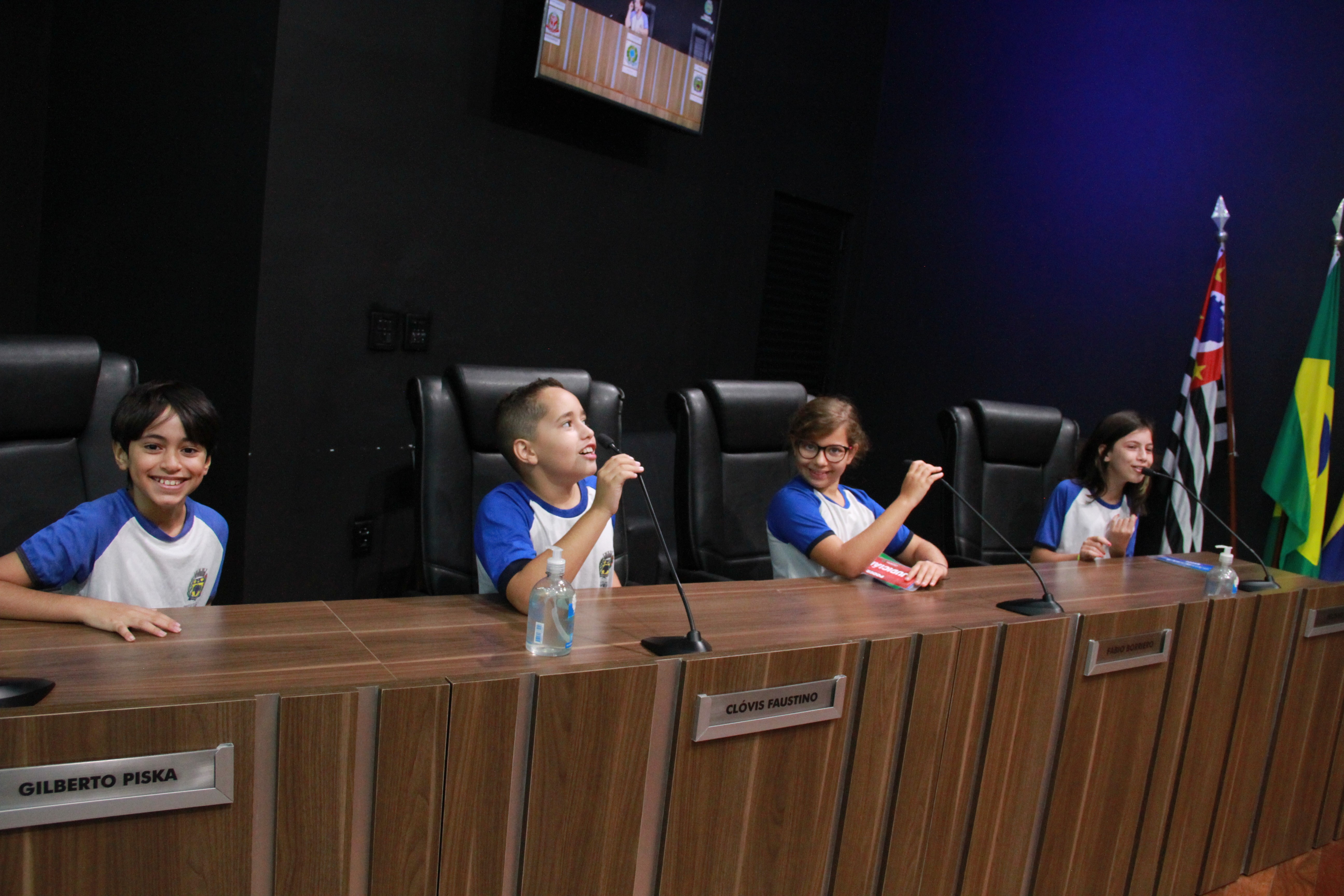 Os vereadores Clayton Finamore (PSD), Clóvis Faustino (MDB), Gilberto Piska (MDB) e Leandro Lourençon (Republicanos) também estavam na Câmara e receberam as crianças em seus gabinetes.