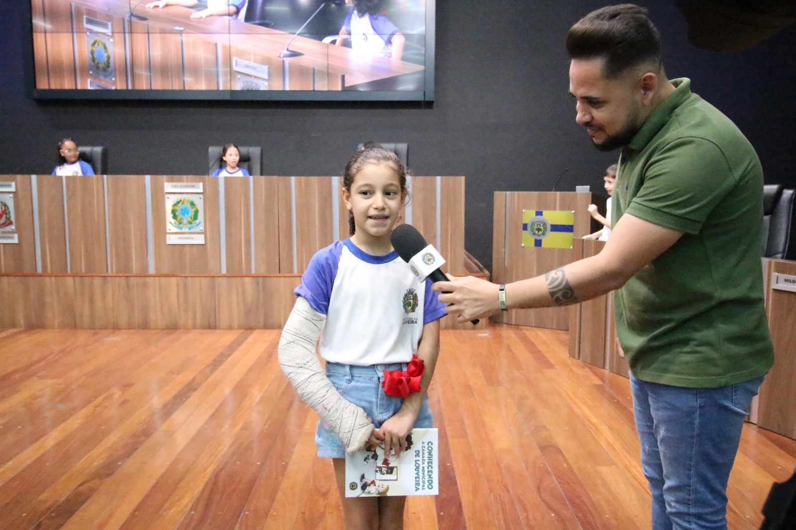 As crianças conversaram, fizeram perguntas, tiraram fotos e se dirigiram ao plenário Vereador José Chiquetto, onde ocorrem as sessões e audiências da Câmara. Participaram, ainda, de uma dinâmica, respondendo perguntas sobre o que aprenderam. Por fim, foram convidadas a subiram ao palco e sentarem às cadeiras dos vereadores, quando receberam exemplar da cartilha explicativa sobre o programa.