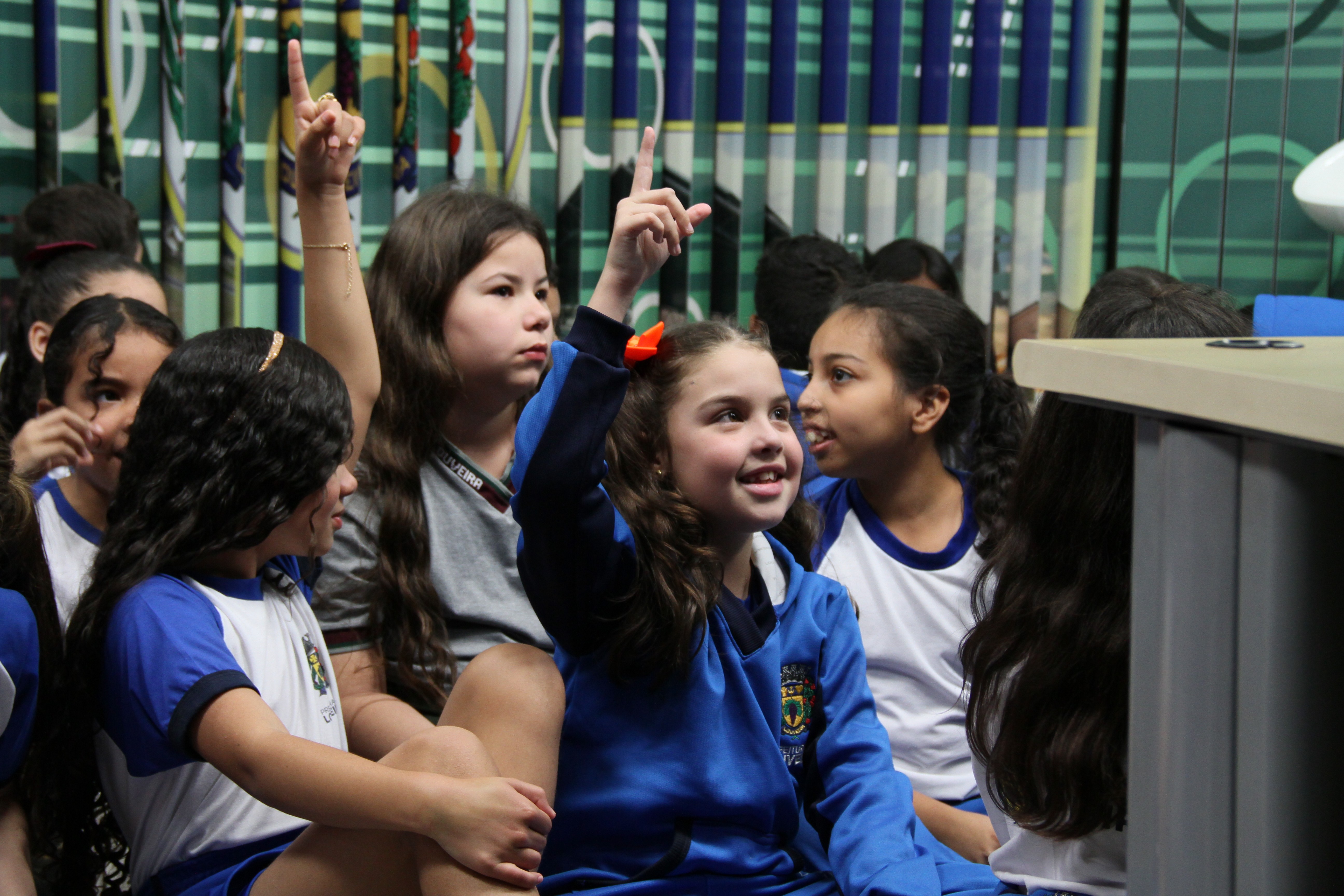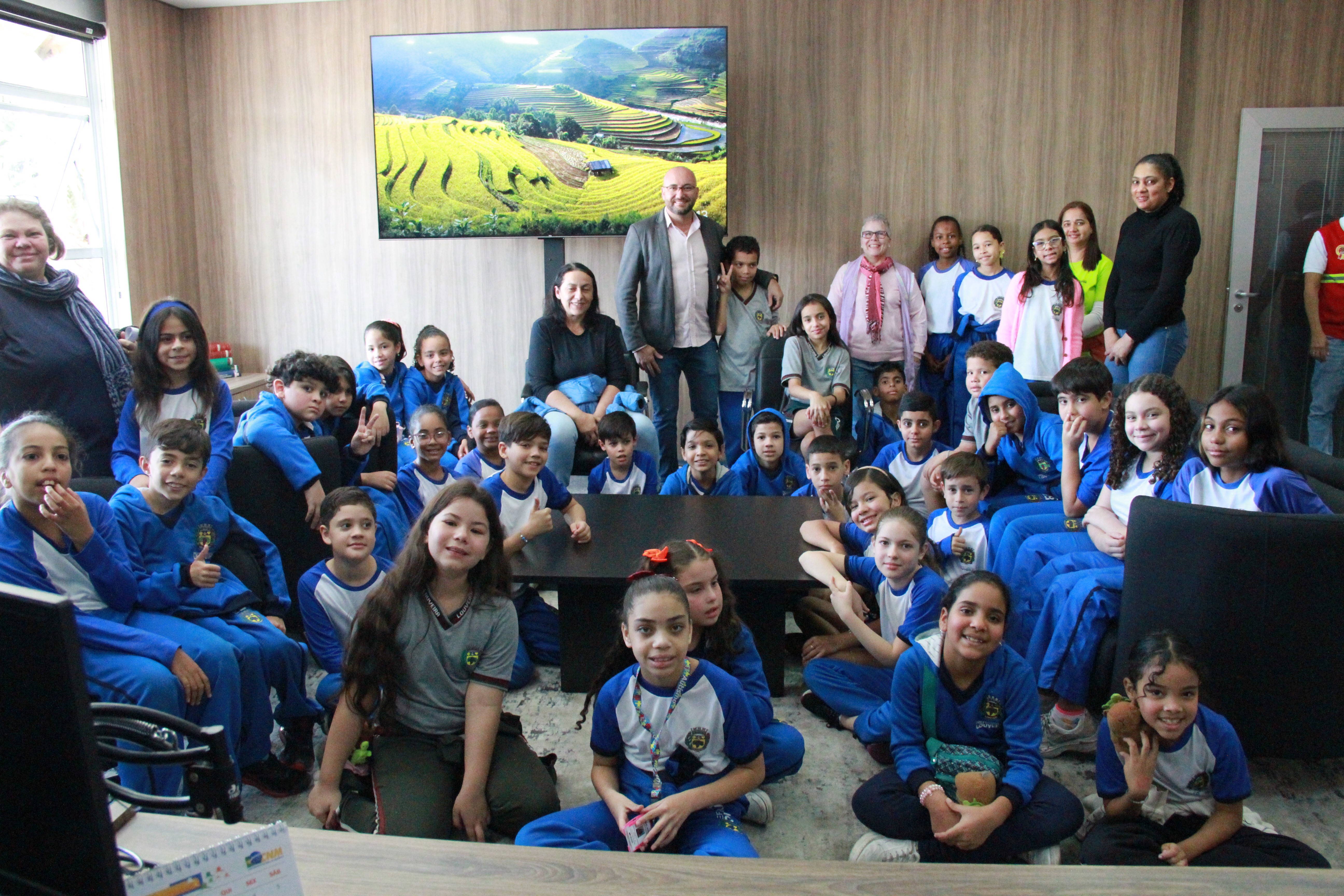 Os alunos da Melissa Sicalhone do 4º ano C e D tiveram a oportunidade de conhecer as dependências da sede do Poder Legislativo e participar de um bate-papo sobre o funcionamento da Casa. Após a recepção e pose especial para as fotos, as crianças passam pela sala da presidência, a parte administrativa, o estúdio de TV e os gabinetes dos demais vereadores. Nesta quarta, os vereadores Kaká Rodrigues, Leandro Lourençon, Clayton, Nildo Redenção, Júlio Cezar e Gilberto Piska receberam as crianças em seus gabinetes.