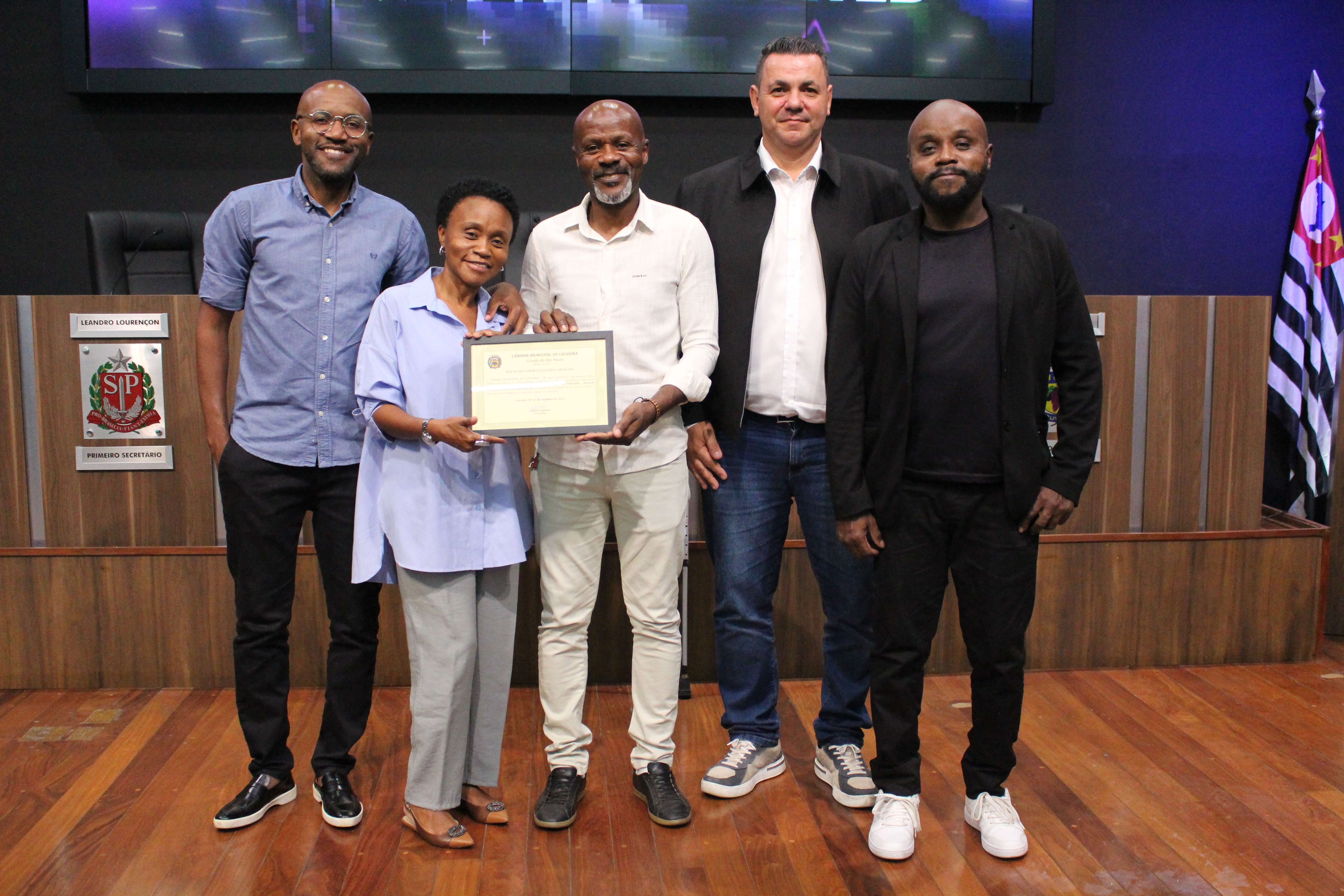 A Moção foi apresentada durante a 14ª Sessão Ordinária, realizada na noite desta segunda-feira, 1º de setembro. “É uma emoção para mim, é uma família muito querida e eles sabem disso”, comentou o vereador Clayton, ao revelar fato curioso enquanto conversava com a família: descobriu que Francisco Adão havia recebido em 2003 o título de cidadão louveirense exatamente das mãos de sua mãe, Elizabete Finamore, vereadora à época. Ele também recebeu, em 1997, o Diploma Mérito Esportivo
