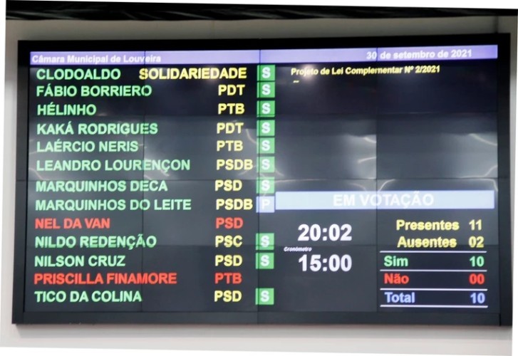 O projeto foi aprovado por todos os dez vereadores presentes. O presidente da Casa não vota (só em caso de empate). O prefeito enviou uma Mensagem, corrigindo partes do texto da lei. E foi aprovada também por unanimidade dos presentes.