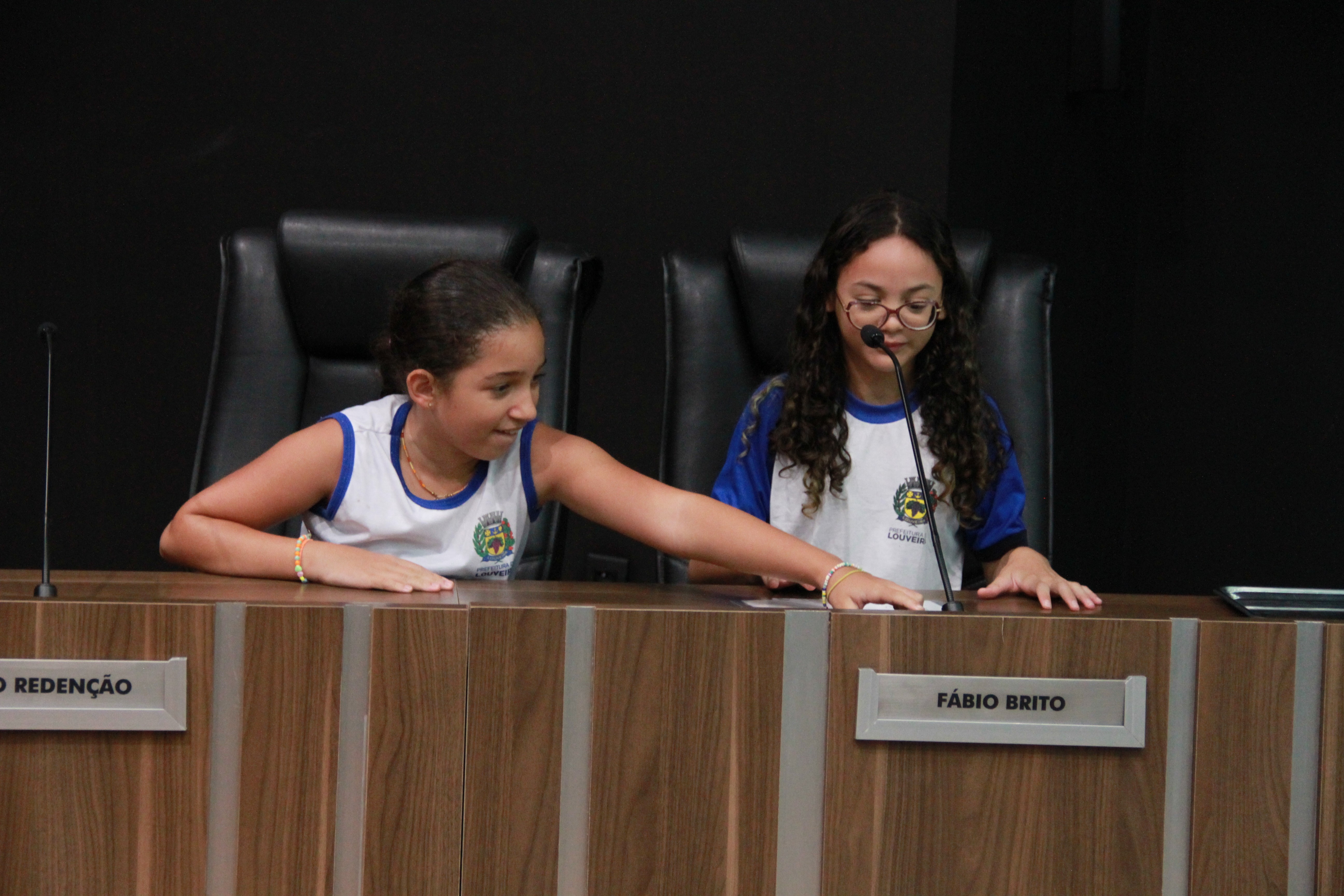 Os vereadores Clayton Finamore (PSD), Clóvis Faustino (MDB), Gilberto Piska (MDB) e Leandro Lourençon (Republicanos) também estavam na Câmara e receberam as crianças em seus gabinetes.