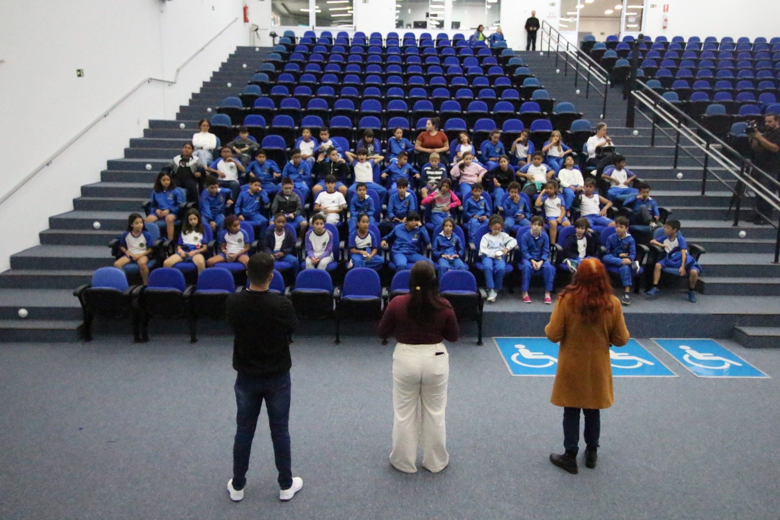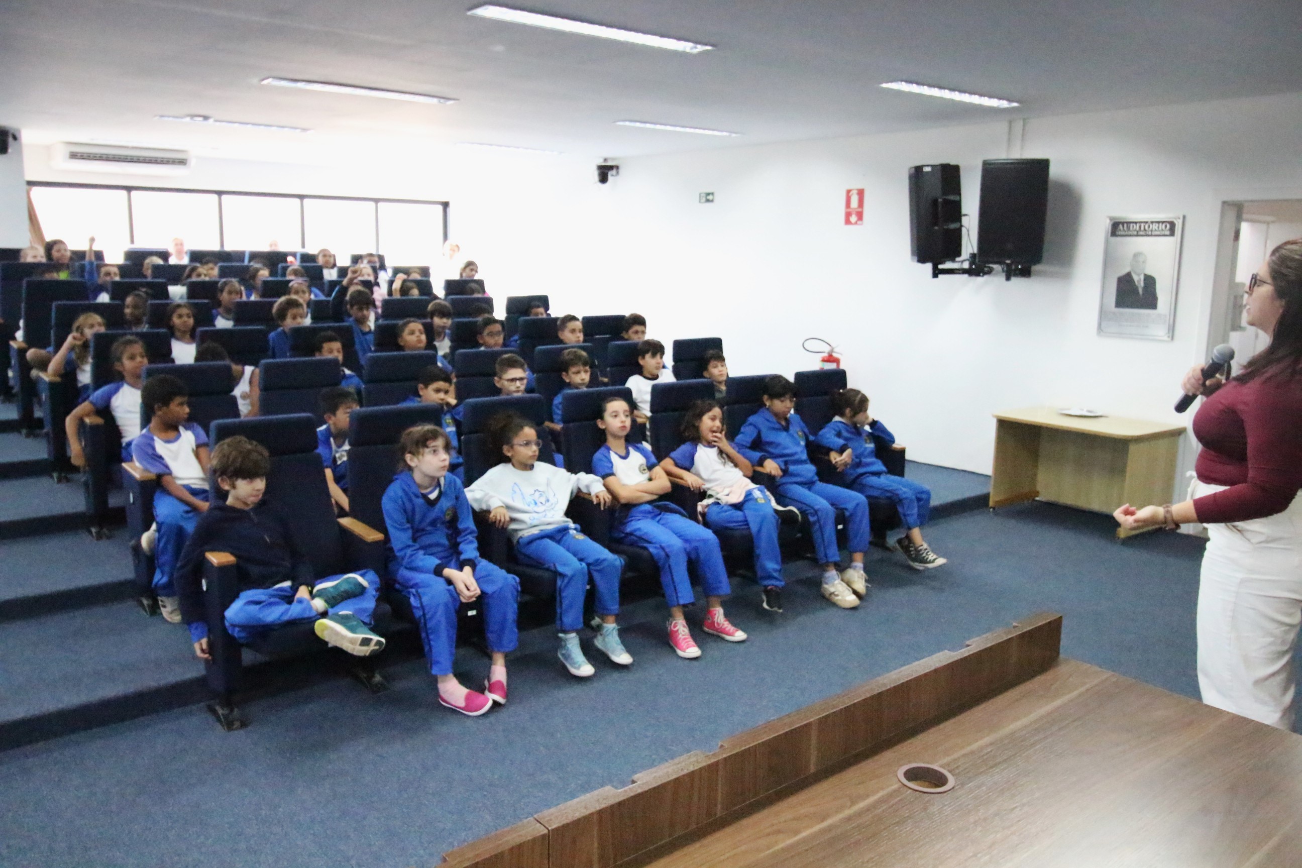 No auditório, assistem a um vídeo especialmente preparado com linguagem adequada ao público infantil. Receberam informações sobre o trabalho do vereador, o funcionamento de uma Câmara Municipal e as diferenças entre os três poderes. Os vereadores Julio Cezar e Clayton Finamore receberam e conversaram com os alunos em seus gabinetes.
