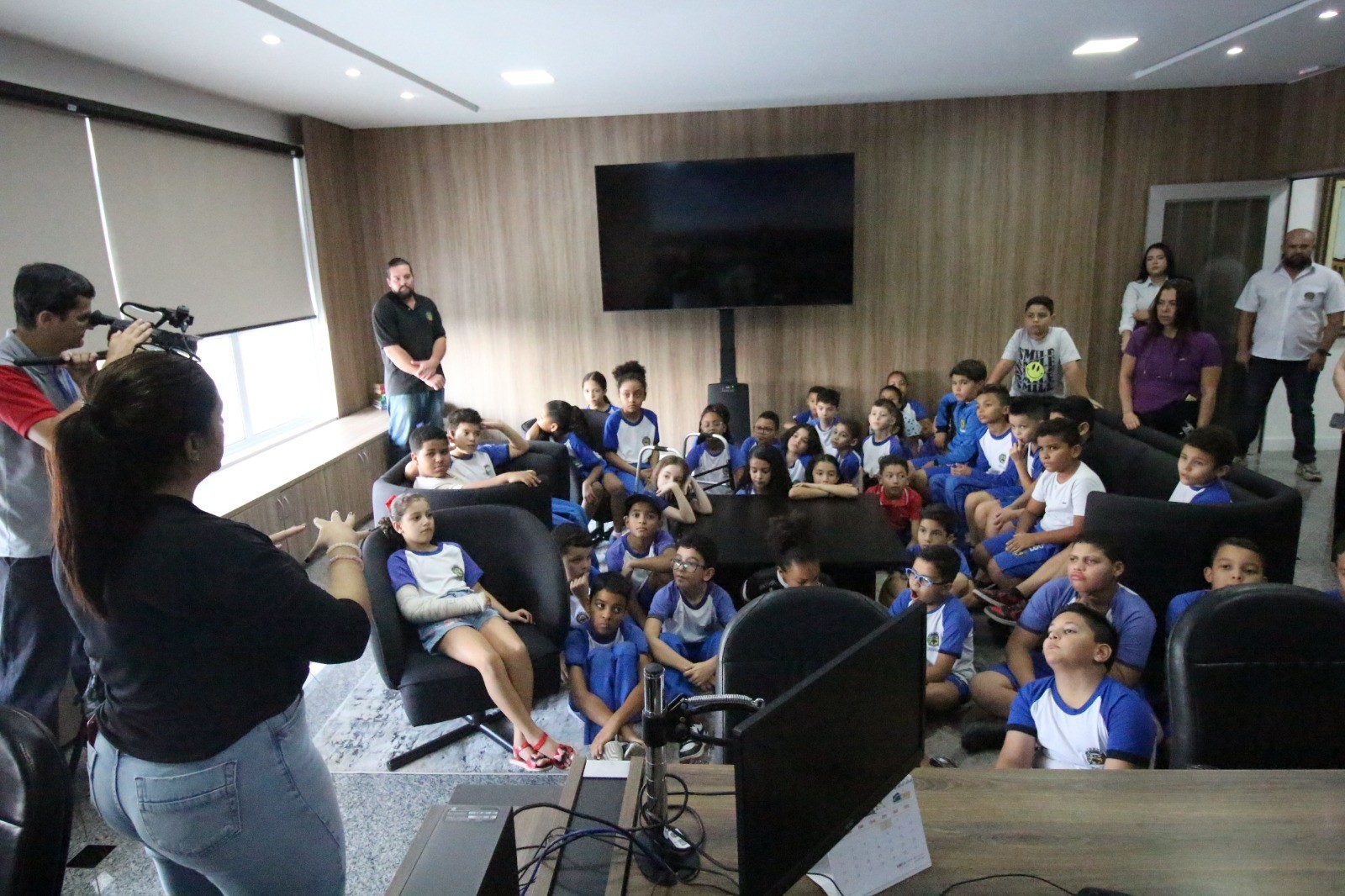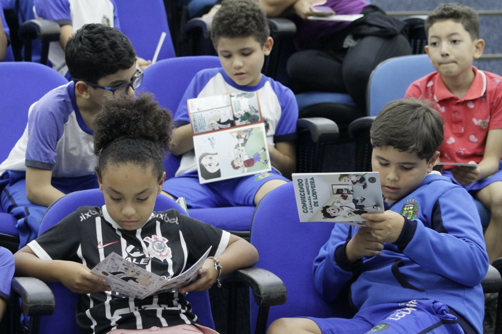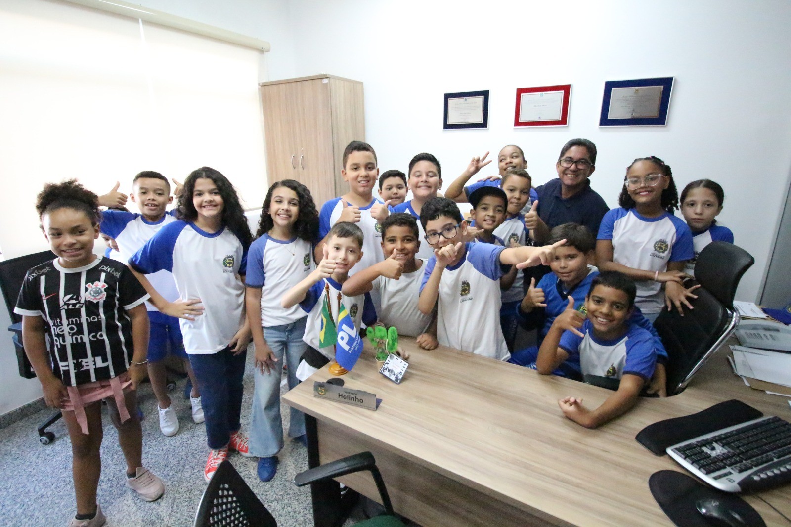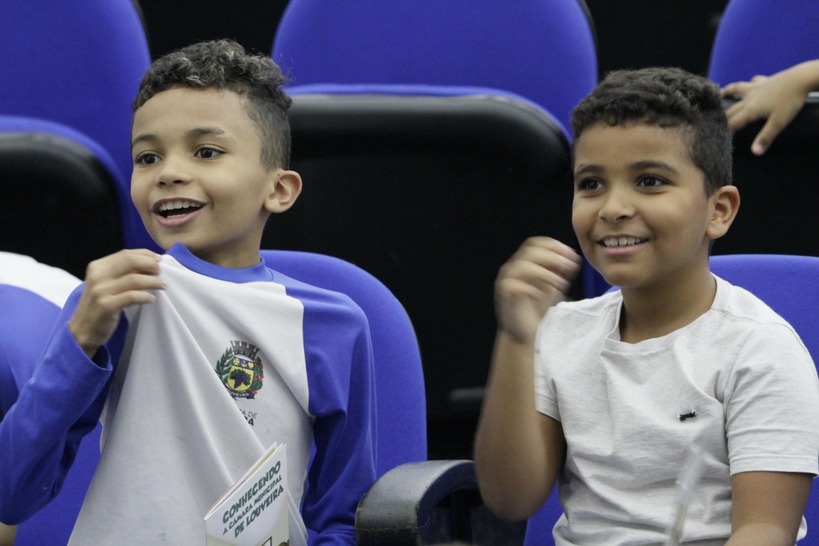 As crianças pertencem às turmas do 4º ano B e C e foram recebidas pelos servidores públicos da Casa. Já no primeiro contato, percebia-se a emoção e ansiedade estampadas nos rostos dos pequenos. Após as orientações iniciais, subiram até a sala da presidência e visitaram o estúdio de TV. Ficaram entusiasmados com as instruções de como se grava um programa, conversaram com os servidores, percorreram os corredores da Casa e receberam informações sobre a função de um vereador e a divisão dos três poderes. No auditório Vereador Jacyr Dinofre assistiram a um vídeo especialmente feito para a faixa etária das crianças e, logo após, visitaram os demais gabinetes dos vereadores. Na Casa, foram recebidos pelos vereadores Clóvis Faustino, Juarez Mineiro, Helinho e Leandro Lourençon.