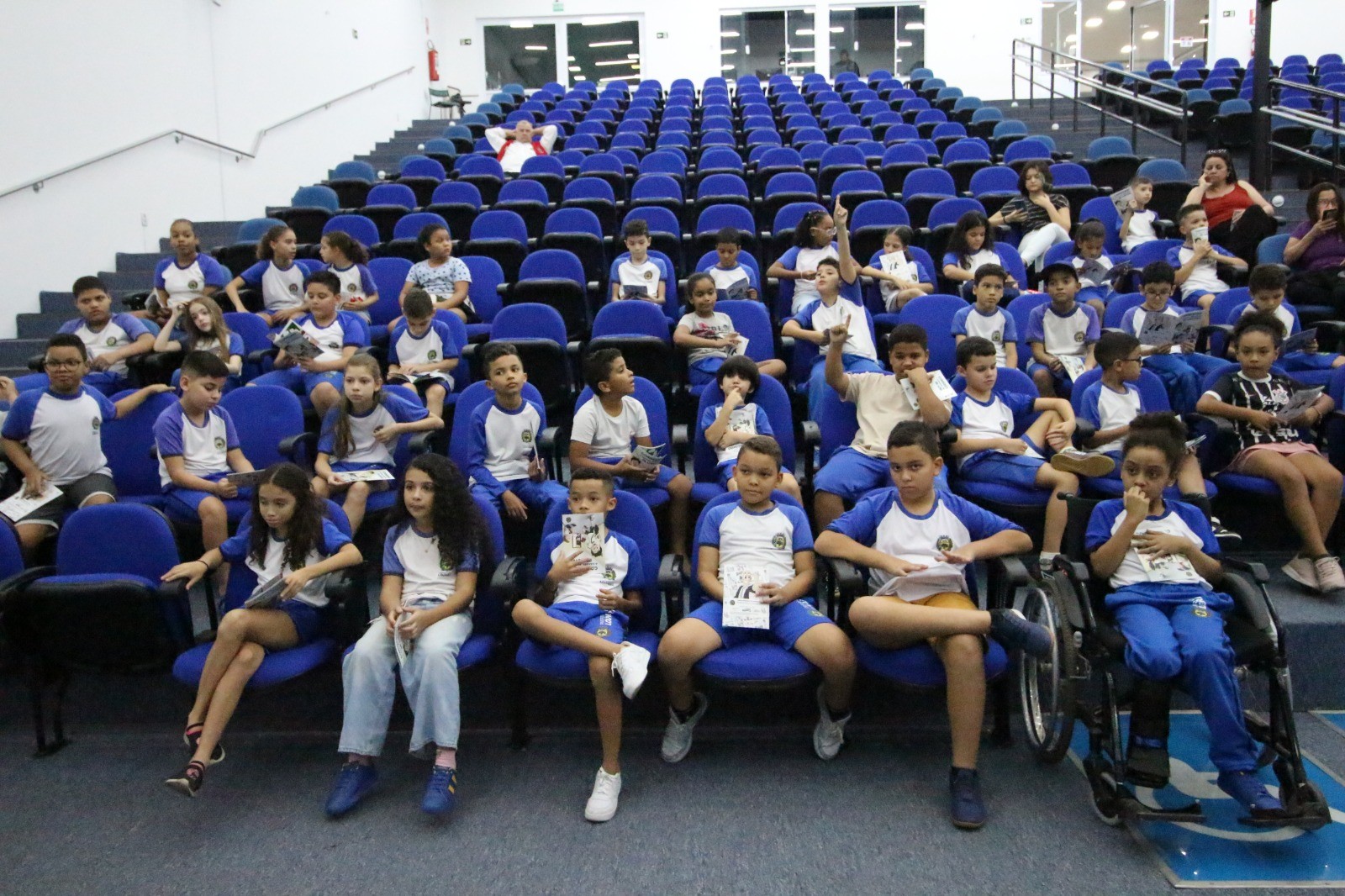 Cerca de 50 alunos da EMEB José Odair Montelatto participaram, nesta quarta-feira, 21, de mais uma edição do programa Conhecendo a Câmara, mantido pela Escola do Legislativo Comendador Walter Mazzali. Desta vez, a visita foi no período da tarde, com a chegada ocorrendo por volta das 13h30.