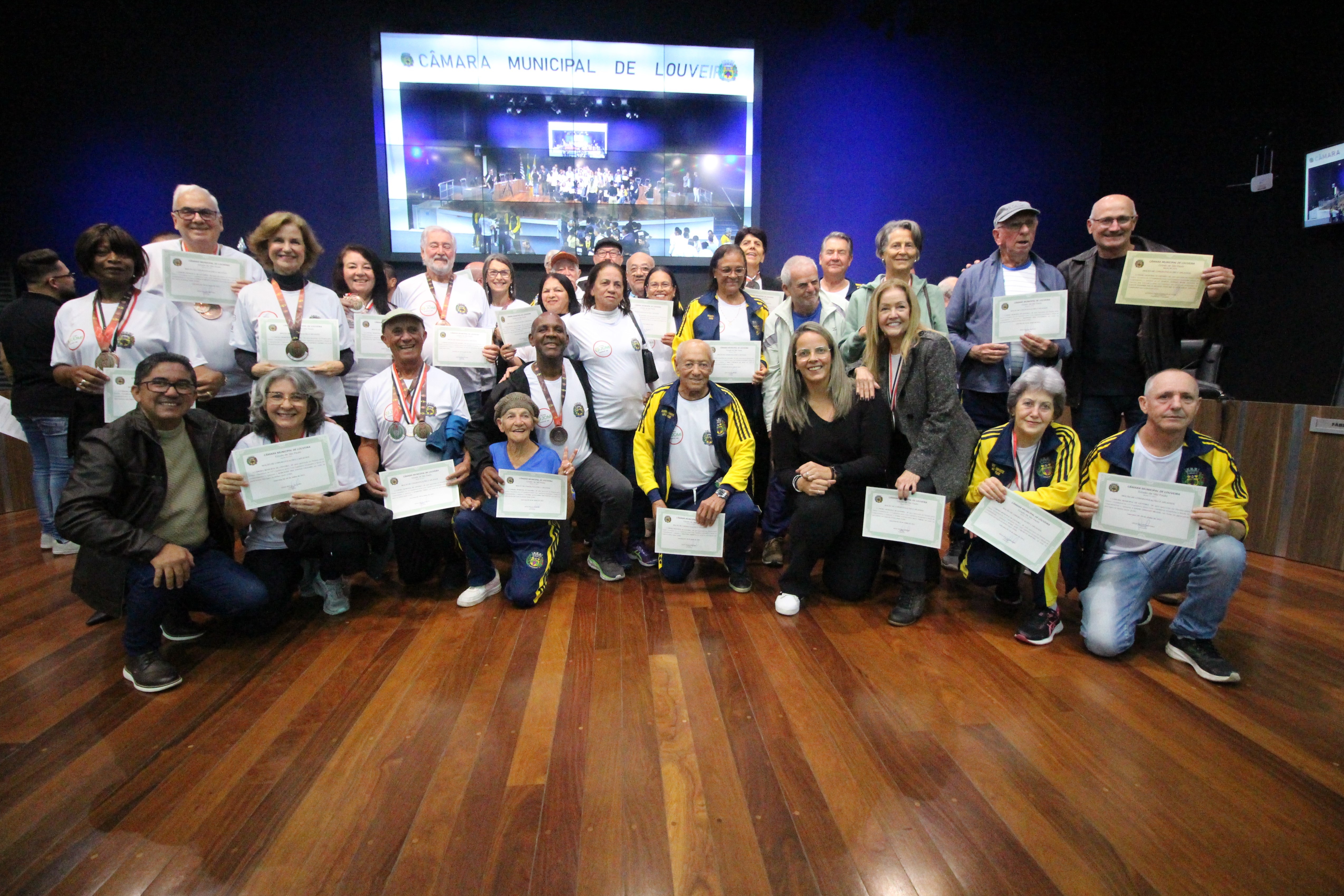 Os 74 atletas e a comissão técnica da Melhor Idade de Louveira, que participaram da 27ª edição dos Jogos da Melhor Idade (JOMI), também foram homenageados na noite desta segunda-feira, 9, pelos vereadores da cidade. A delegação, que foi até Cerquilho e disputou 11 das 15 modalidades oferecidas, conquistou o oitavo lugar no torneio e tornaram-se o orgulho para a cidade.