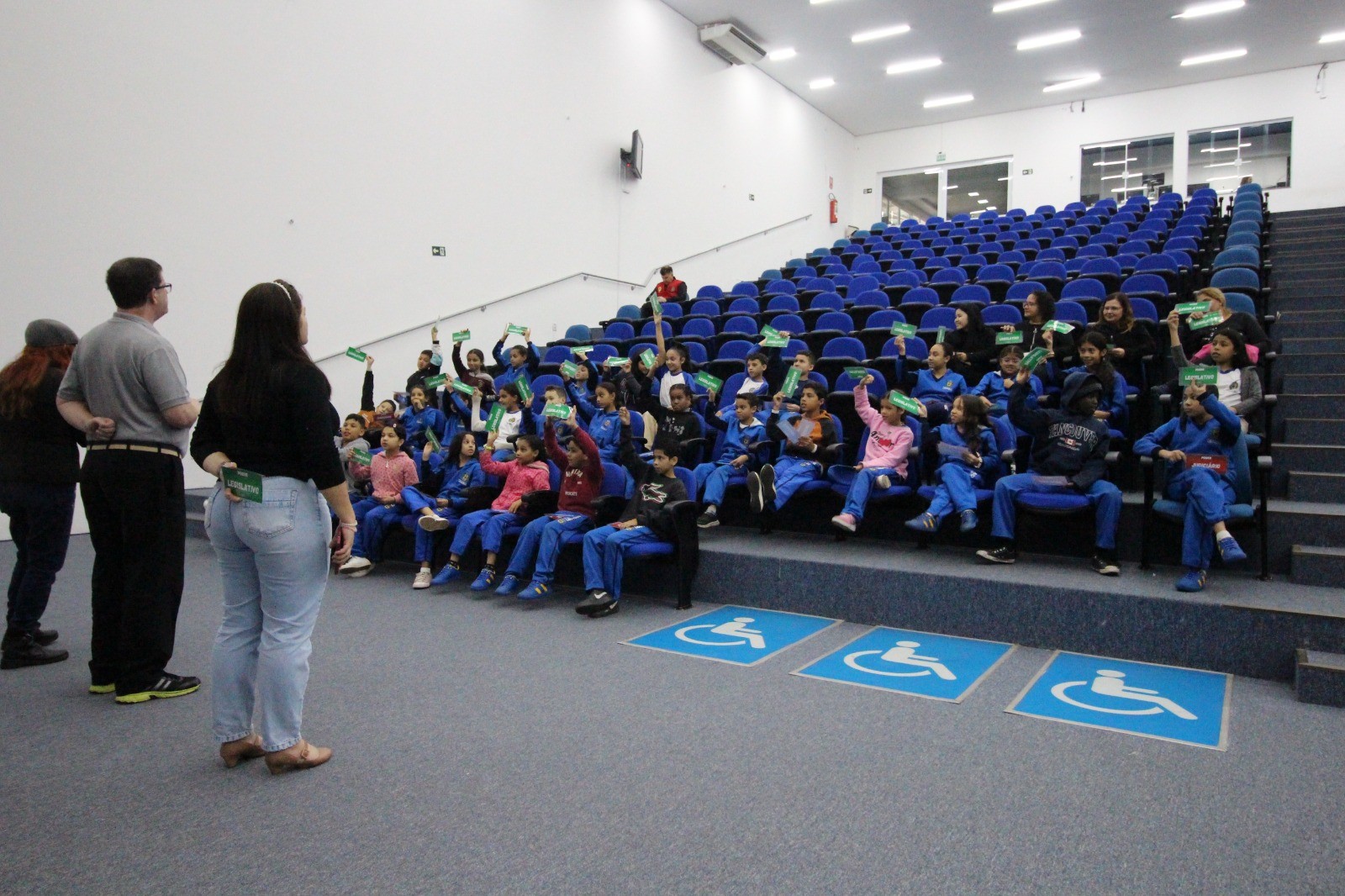 Um vídeo com linguagem infantil é apresentado para reforçar os ensinamentos. Todo o percurso é acompanhado por servidores que fazem parte da Escola e integrantes da Brigada de Incêndio da Câmara. No plenário, as crianças batem mais um papo e são convidadas para ocuparem as cadeiras dos vereadores no Plenário Vereador José Chiquetto.
