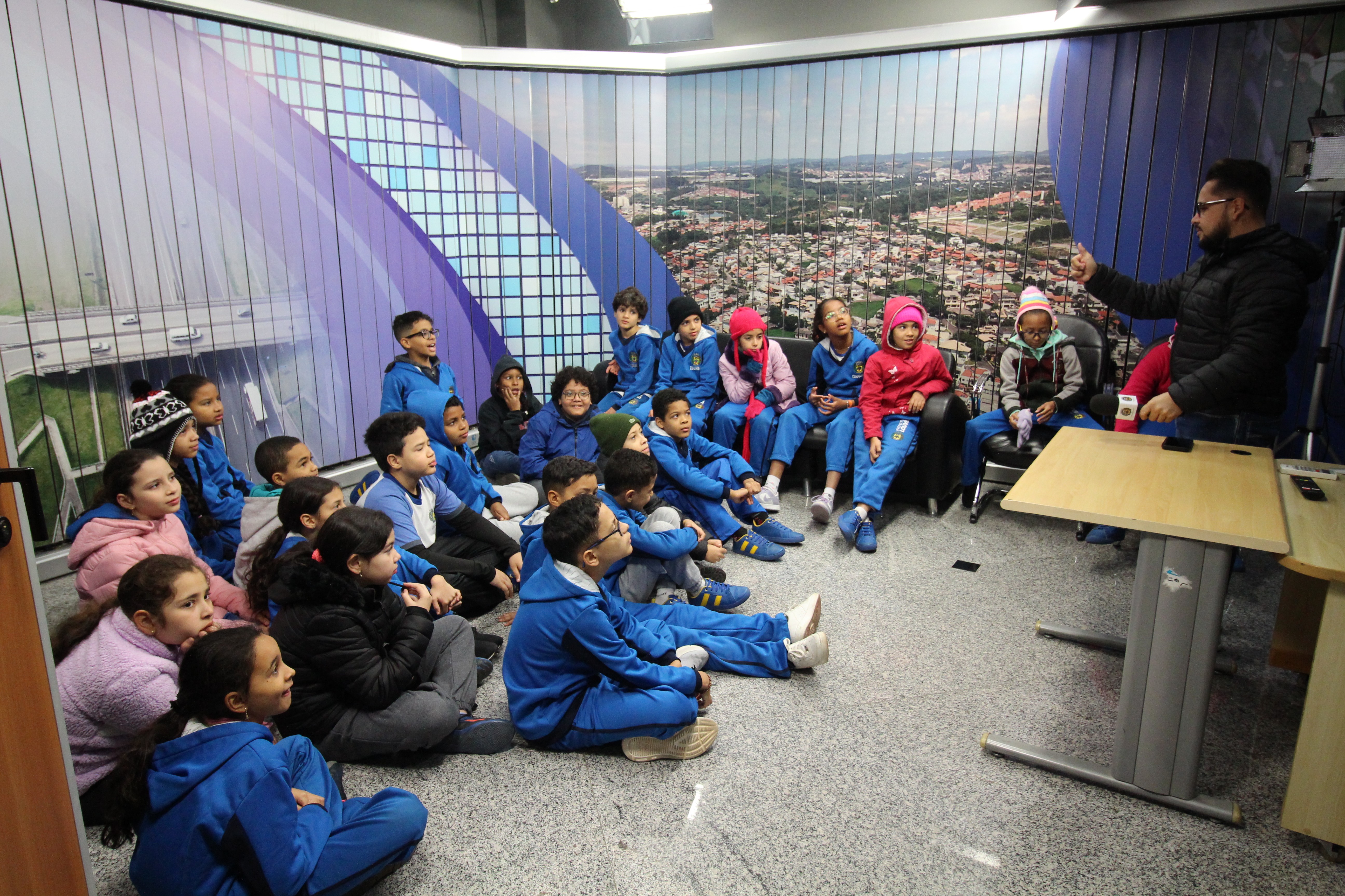 Após serem recepcionados, os alunos da Frederico Pagotto foram conhecer a sala da presidência, as salas administrativas, o estúdio de TV e os gabinetes dos demais vereadores. No dia de hoje, o vereador Clayton conversou com as crianças.
