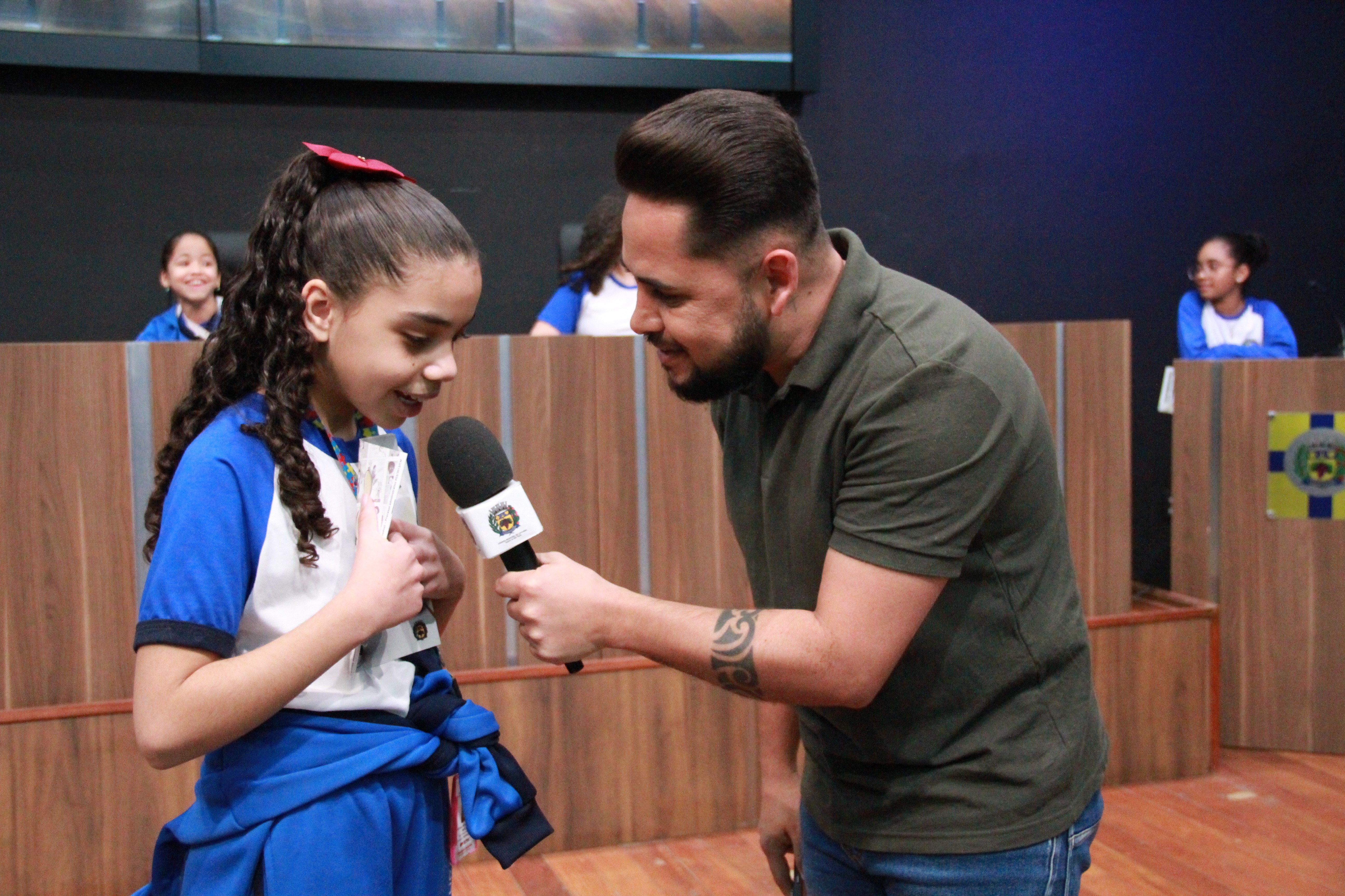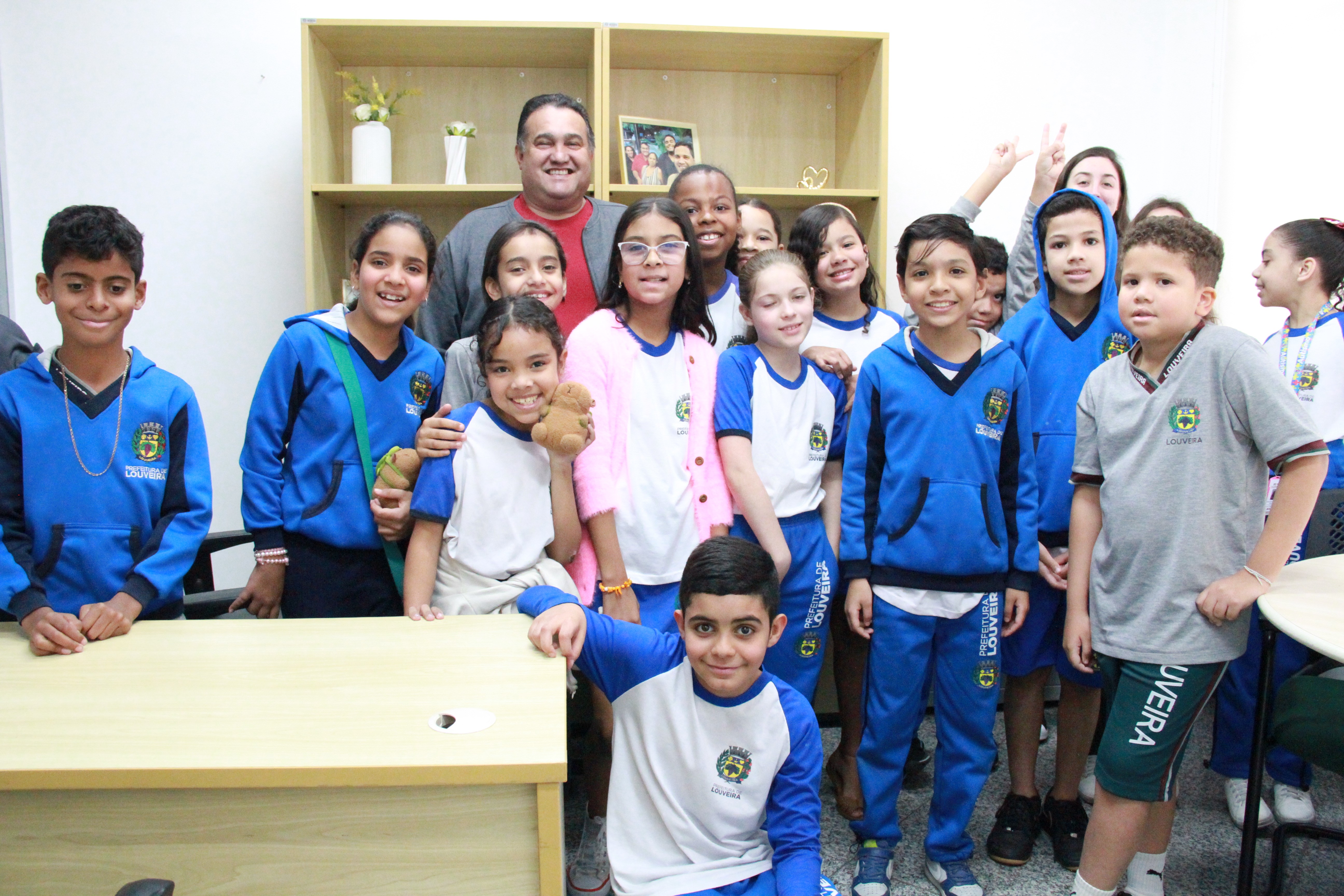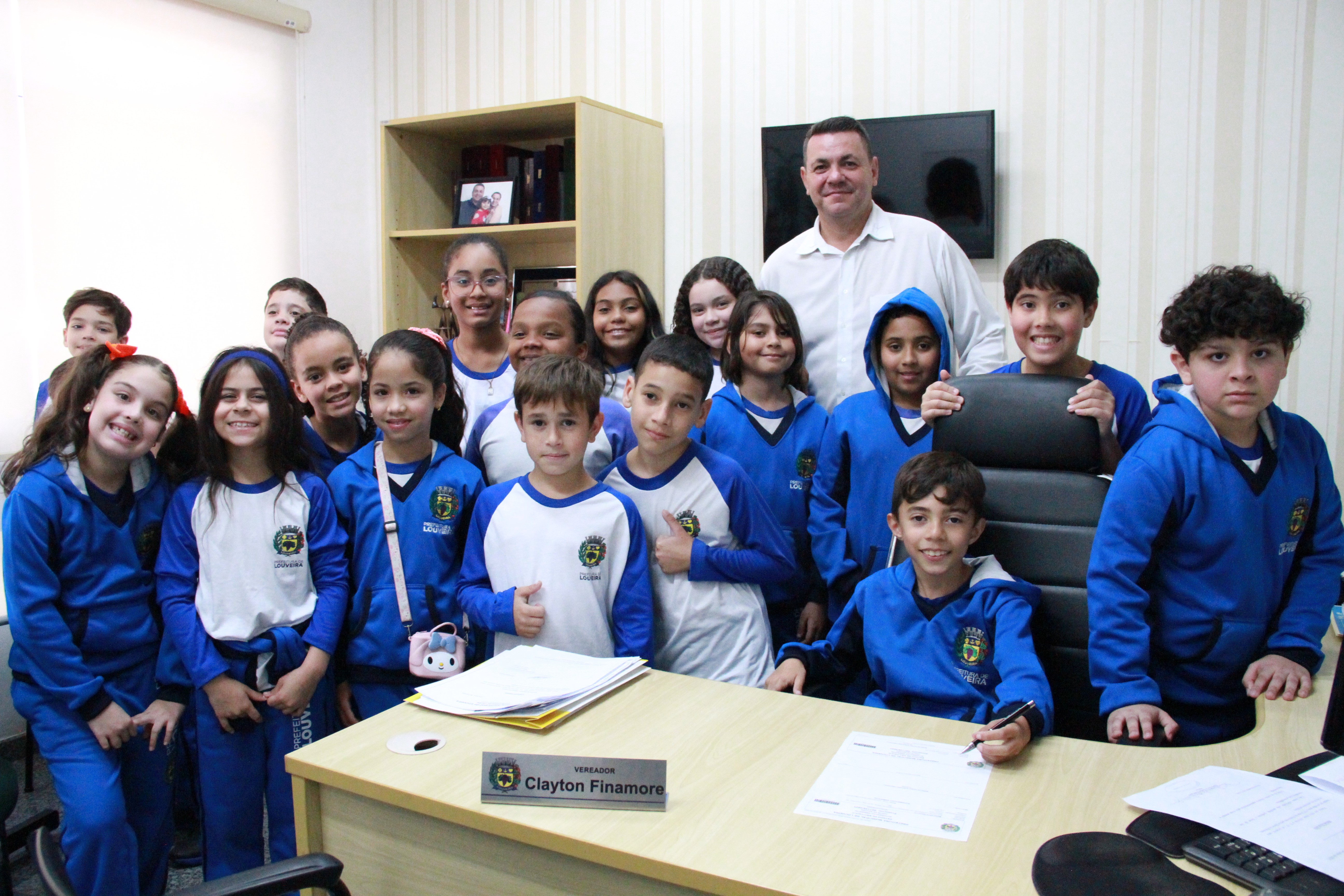 Os alunos da Melissa Sicalhone do 4º ano C e D tiveram a oportunidade de conhecer as dependências da sede do Poder Legislativo e participar de um bate-papo sobre o funcionamento da Casa. Após a recepção e pose especial para as fotos, as crianças passam pela sala da presidência, a parte administrativa, o estúdio de TV e os gabinetes dos demais vereadores. Nesta quarta, os vereadores Kaká Rodrigues, Leandro Lourençon, Clayton, Nildo Redenção, Júlio Cezar e Gilberto Piska receberam as crianças em seus gabinetes.